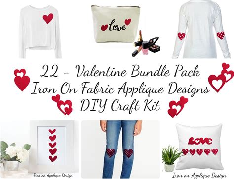 DIY Iron On Hearts Applique Bundle Kit: 22 Fabric Designs
