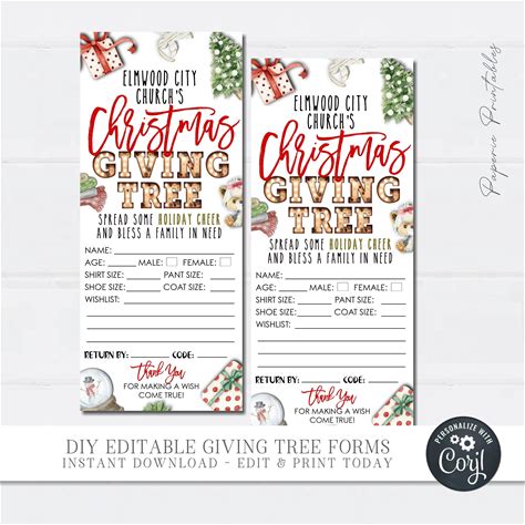 Editable Giving Tree Tags , Angel Tree Tags, Christmas Giving Tree. Holiday Toy Drive, School, Church, Community Holiday, Giving Tree Tags