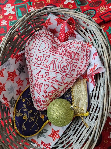 Christmas Sentiments Hanging Heart Redwork Stitchery Hand Embroidery Instant Download PDF Digital Pattern & Instructions
