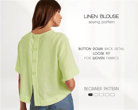 Linen Tunic Blouse Sewing Pattern PDF, Popover Linen Shirt Pattern