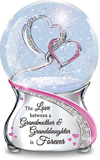 The Love Between A Grandmother & Granddaughter Musical Glitter Globe Featuring Entwined Silver & Glittery Pave Hearts By The Bradford Exchange